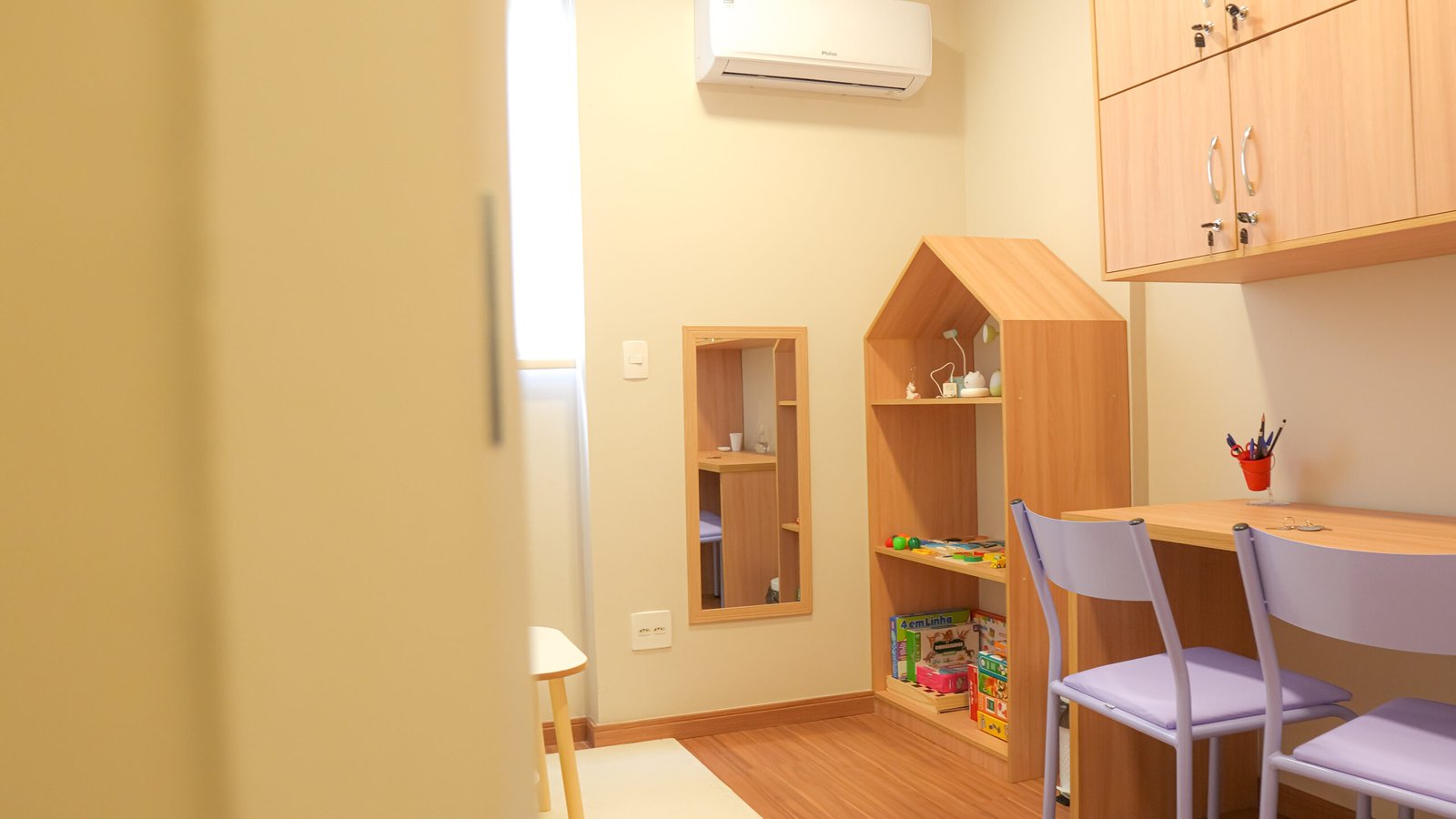 Equipada com os materiais necessários para o seu atendimento. Um ambiente acolhedor, seguro e colorido. Perfeito para quem atende os pequenos com carinho.